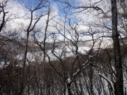 なんとか、駒ケ岳1,685mに到着。ここは、木々に囲まれている為かあまり雪がありません。
