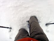 登山道をまともに進んでみたのですが、腰まで埋もれて・・・ストックは、グリップまで埋もれてしまう状態です。
